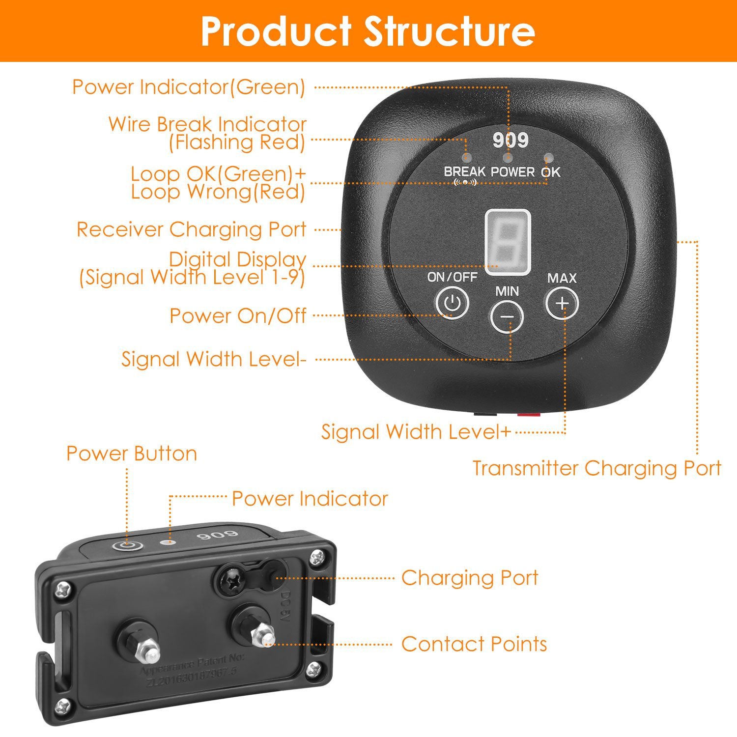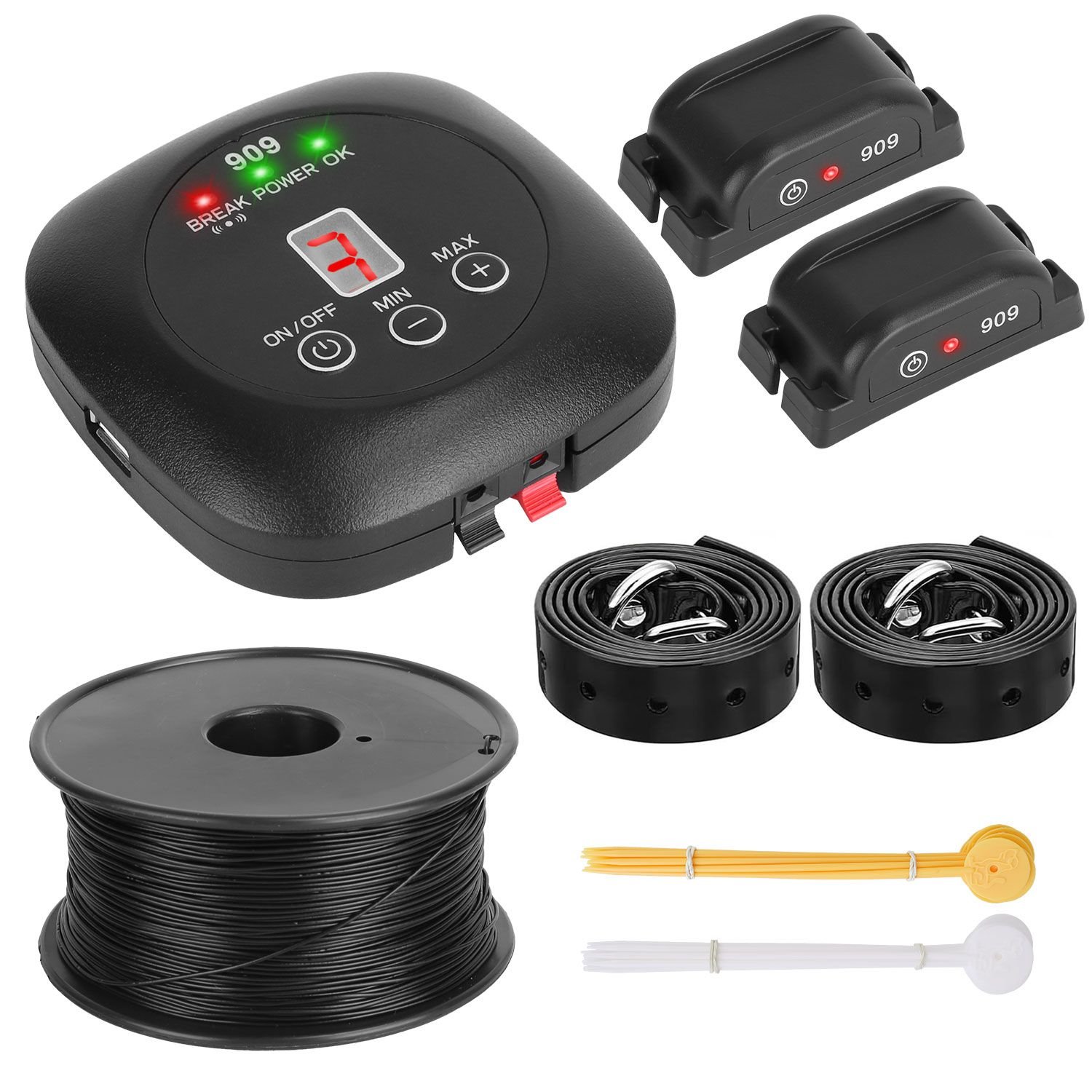 *Adjustable Signal Width & Multiple Dogs Support*:One transmitter can pair with multiple receivers. The transmitter also comes with 1.77 acre signal field range and 9 adjustable levels. The signal width can be increased .5m/1.6ft per level from boundary wire to warning zone and from boundary wire to static correction zone. The wire break warning can tell you in time if the wire is broken. The 'OK' indicator tells if the loop is right.